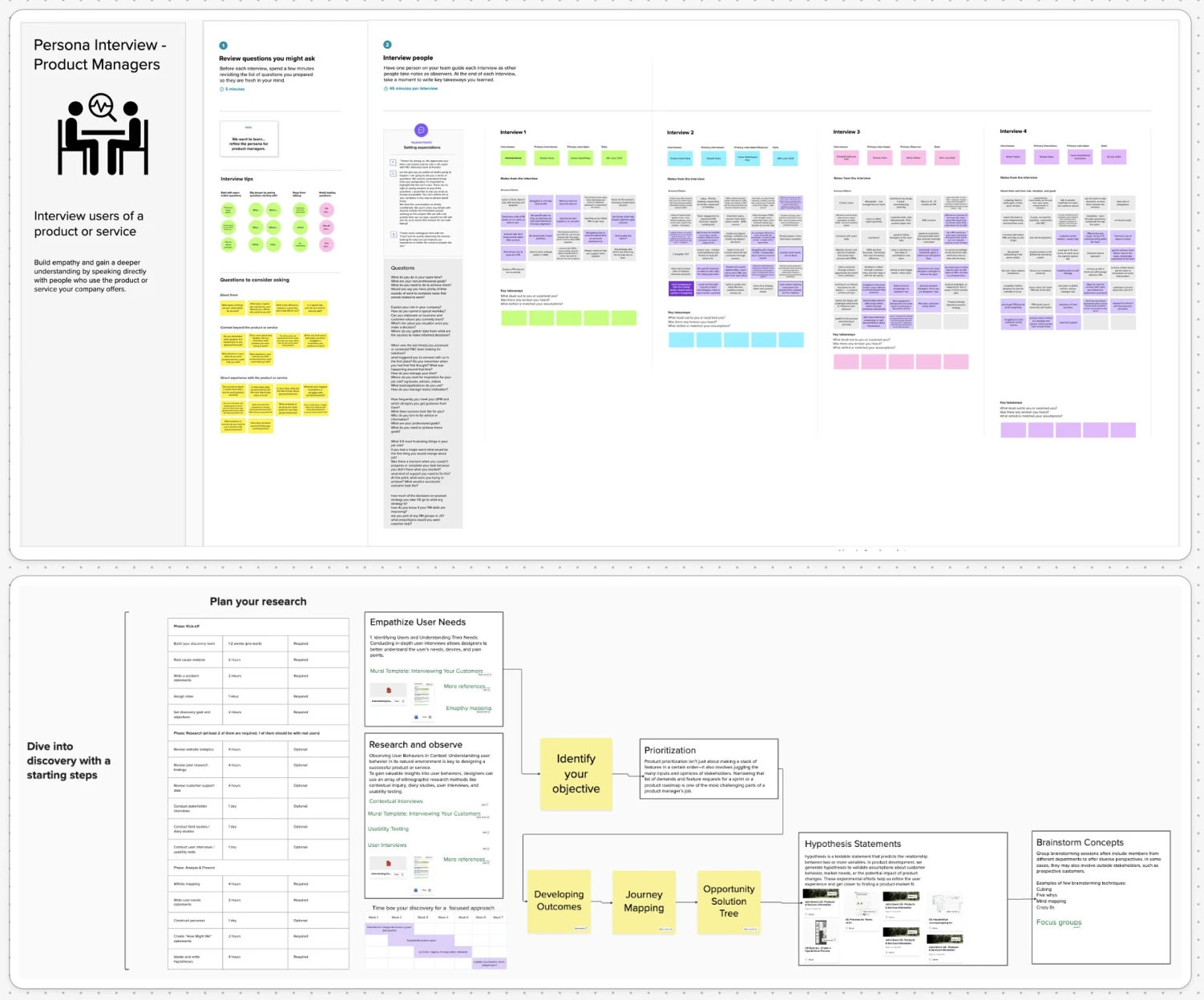 - Contextual research reveals what surveys cannot. Shadowing PMs in their actual meetings surfaced friction points interview questions alone would never have found.